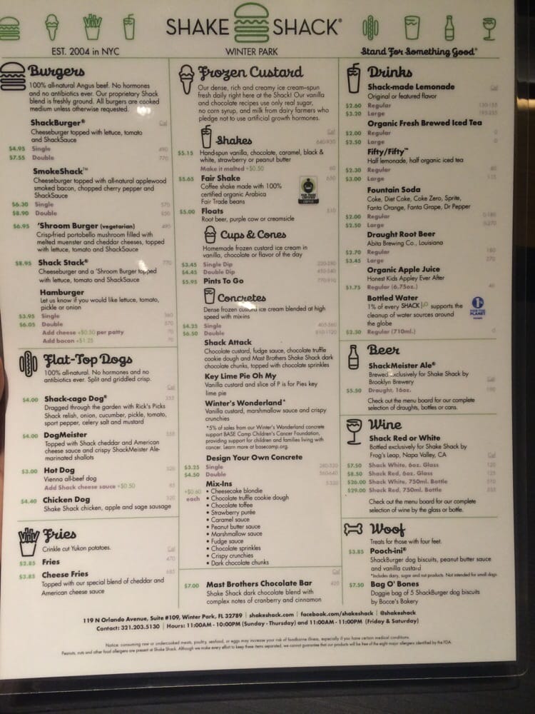 Shake Shack Winter Park Menu